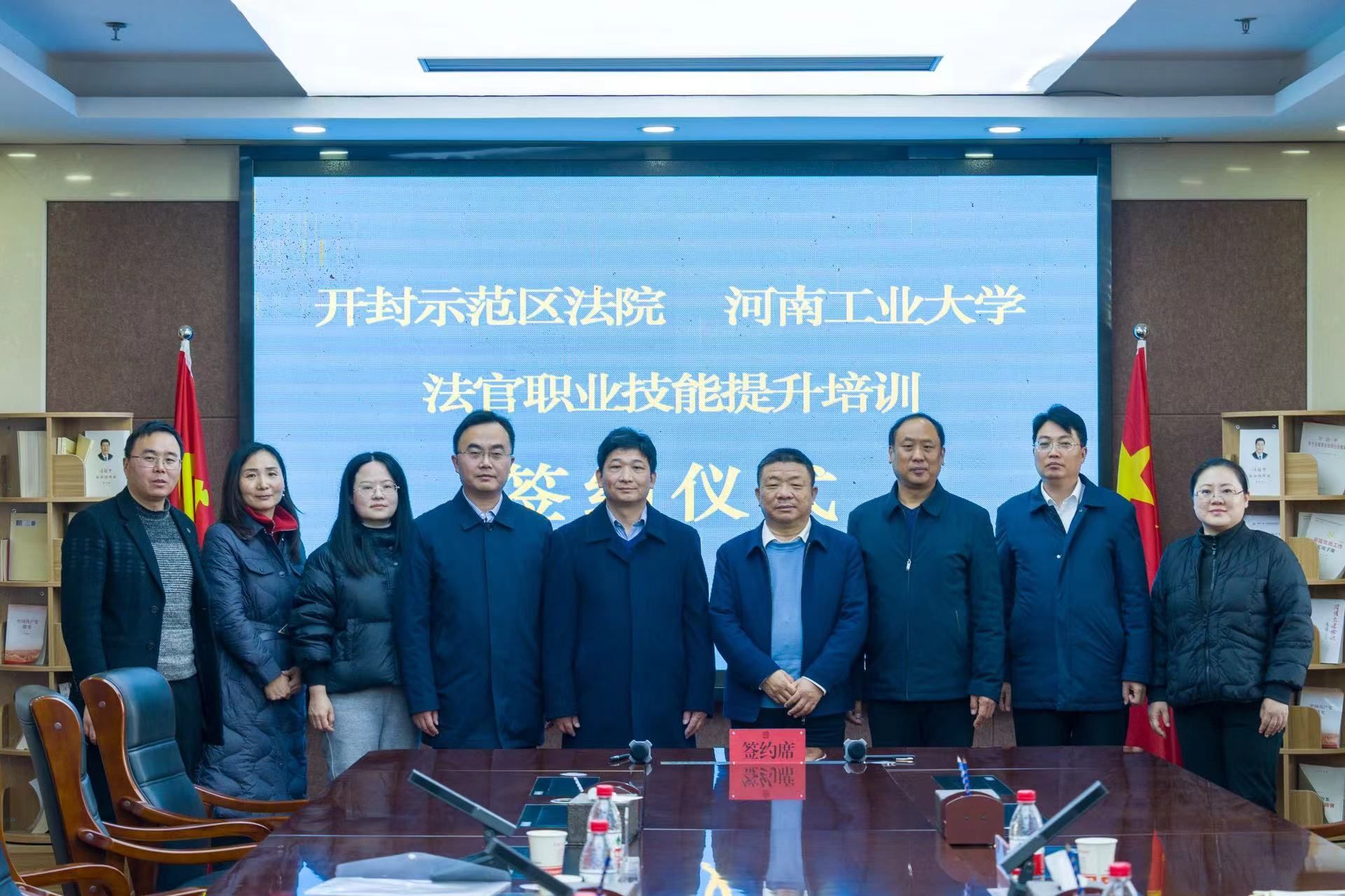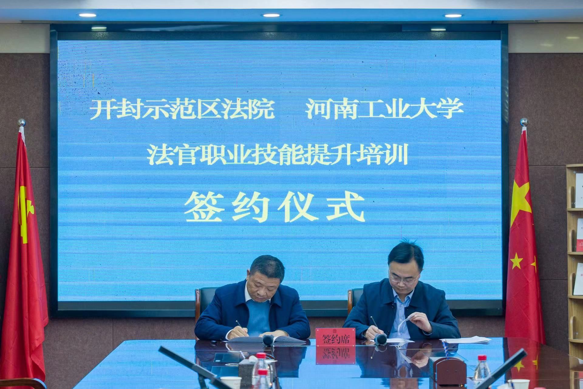 与开封城乡一体化示范区人民法院举行法官职业技能提升培训签约仪式。学院党委书记许文、院长张道许、开封城乡一体化示范区人民法院党组书记、院长张童等出席签约仪式。