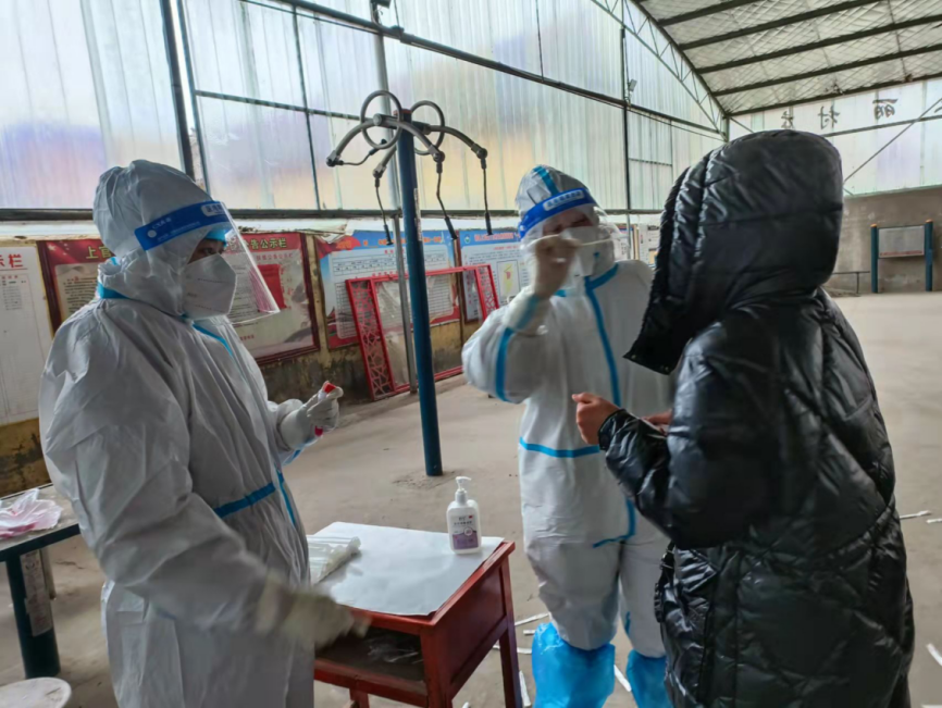 法学1903班丁慧,由于家乡当地医护人员紧缺,她积极参加检测采样培训,身穿防护服,像一个真正意义上的医护人员一样,连着几轮为广大村民做起了核酸检测采样工作。寒风凛冽,她坚守在防疫关卡,帮助村委会排查进出人员、对来往人员进行登记、核查返乡人员……不畏严寒,不惧艰辛,她在自己的服务岗位上发光发热。