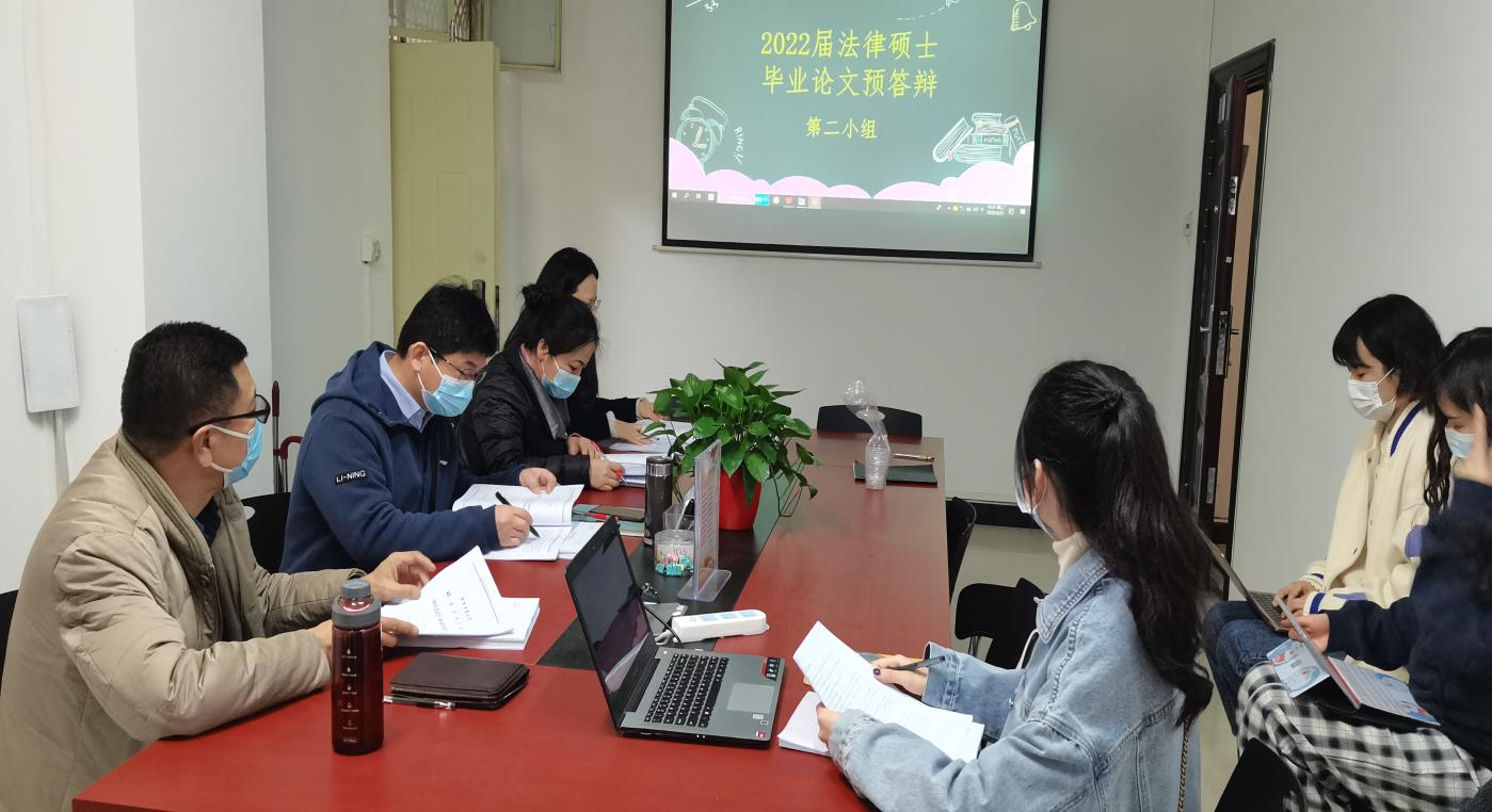 于3月22日下午举行了2022届法律硕士学位论文预答辩。预答辩分两个小组进行,张道许和李文江任组长,全体硕士生导师和2022届毕业生参加,2023届毕业生旁听。