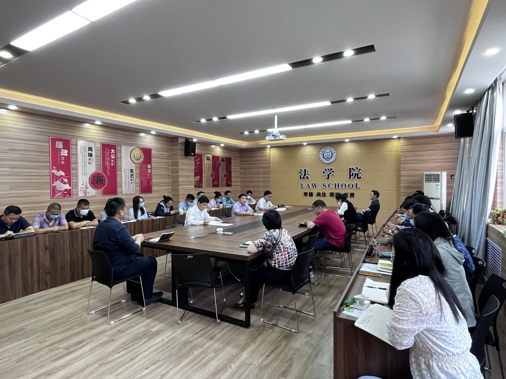 会上,院长张道许首先通报了学院硕士点建设情况。2022年7月12日,国务院学位委员会印发《关于下达2021年动态调整撤销和增列的学位授权点名单的通知》,增列我校法学学科为硕士学位授权一级学科。下一步,学院将以法学硕士点建设为契机,坚持党建引领,打造高素质教师队伍,培养卓越法律人才,营造氛围持续提升科研水平,凝心聚力服务学校“双一流”创建。