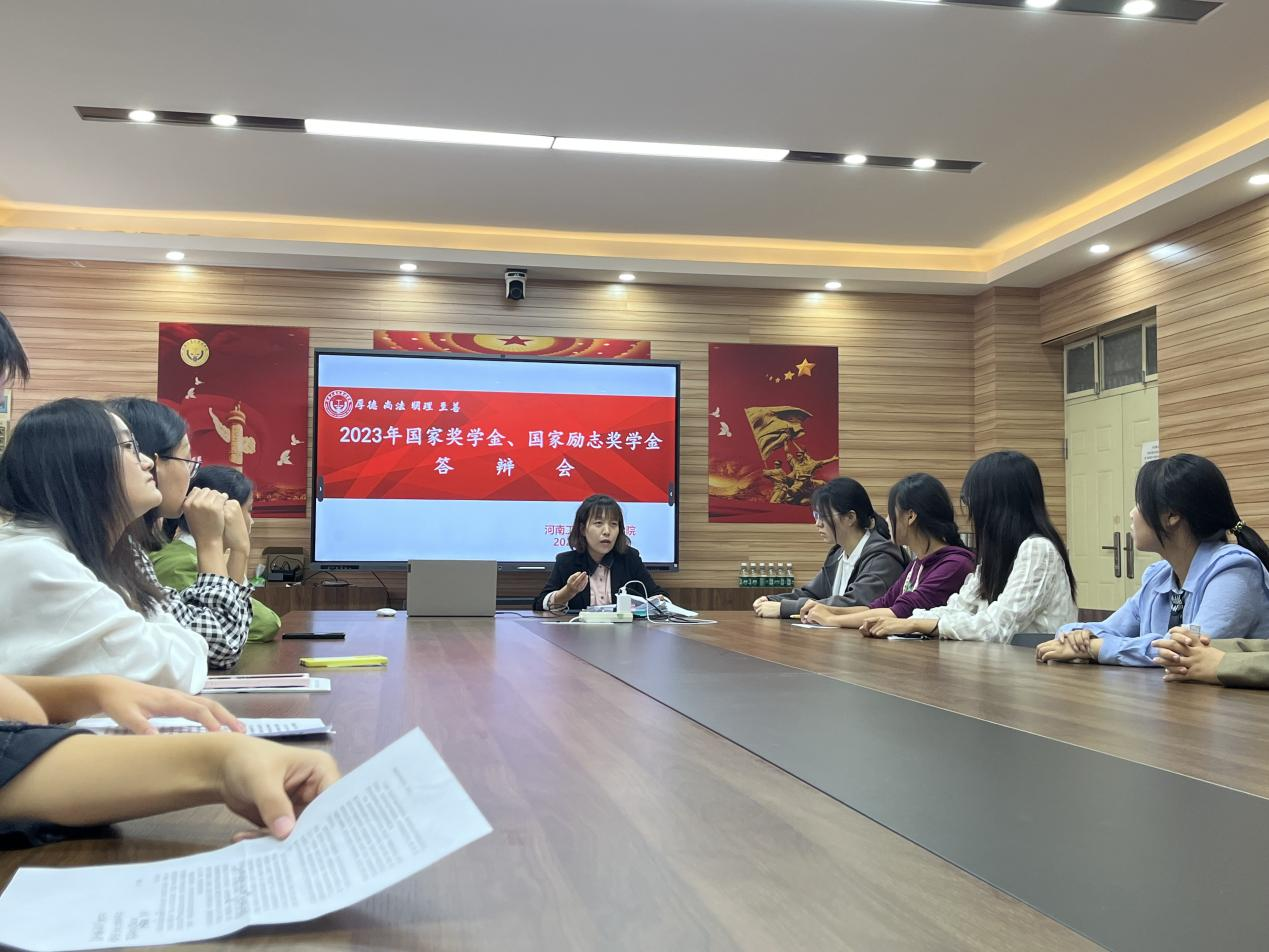 在3424会议室通过线上线下相结合的方式召开国家奖学金、国家励志奖学金答辩会,党委副书记、全体辅导员以及51名国家奖学金、国家励志奖学金申请者参加会议,会议由周静主持。