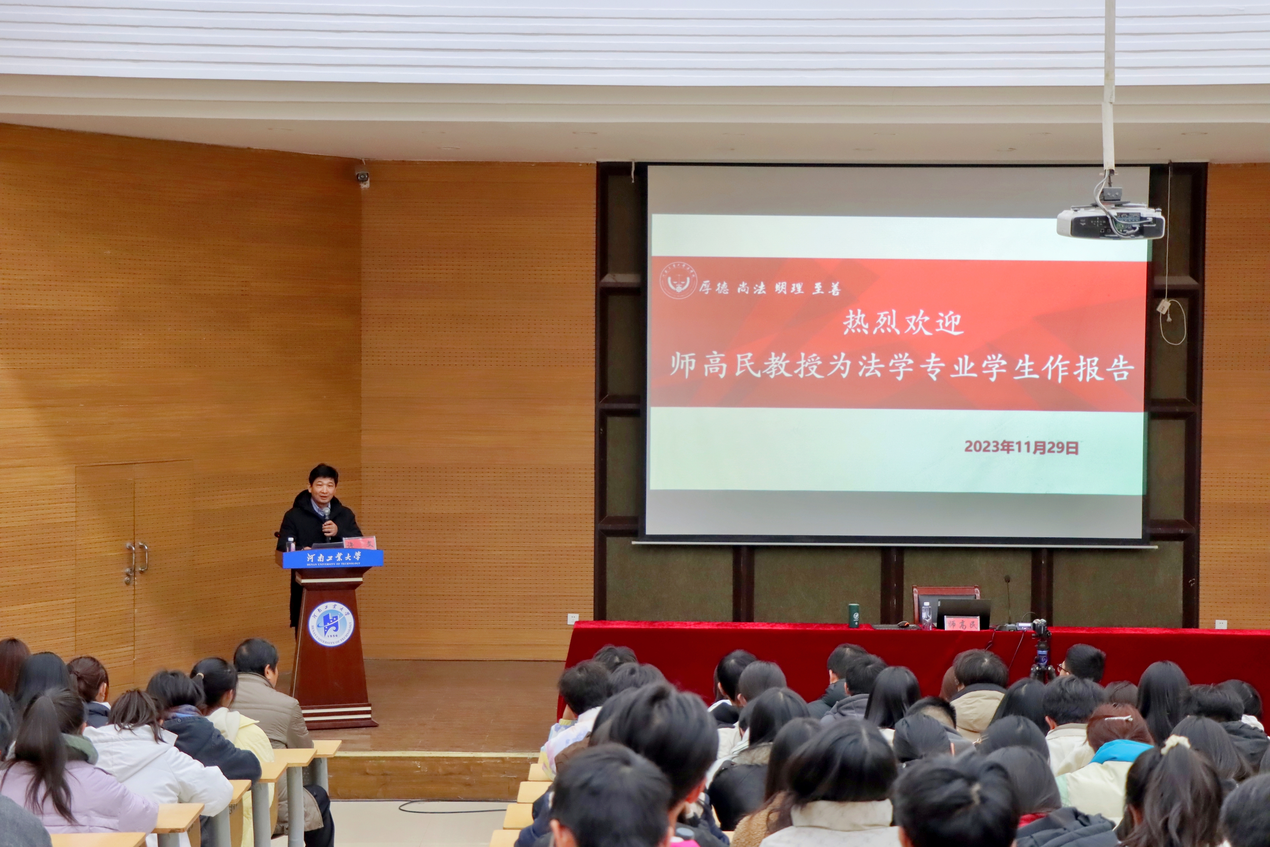 在嵩山路校区学术报告厅成功举办政法论坛第93期学术报告活动。邀请中国粮食博物馆名誉馆长、中国高校博物馆专委会常委副主任委员、河南省综合评标专家、河南省哲学社会科学规划项目评审专家师高民教授作题为“粮食安全与古代粮食法规”的学术报告。芭乐视频