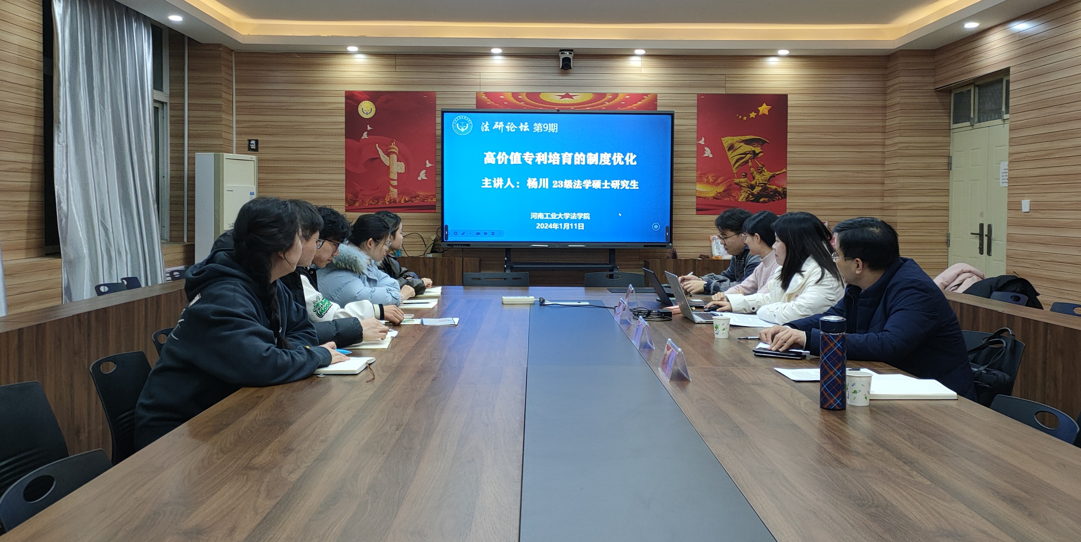 在学院3424会议室成功举办“法研论坛”第9期学术研讨活动。此次活动由2023级法学硕士研究生组织,邀请学院学科科研与研究生办公室主任苏冬冬博士担任评议人、硕士生导师穆向明副教授担任总结人。2023级法学硕士研究生杨川围绕“河南省高价值专利培育的制度优化”作主题分享。2023级全体法学硕士研究生参加会议。会议由2023级法学硕士研究生李莞玓主持。