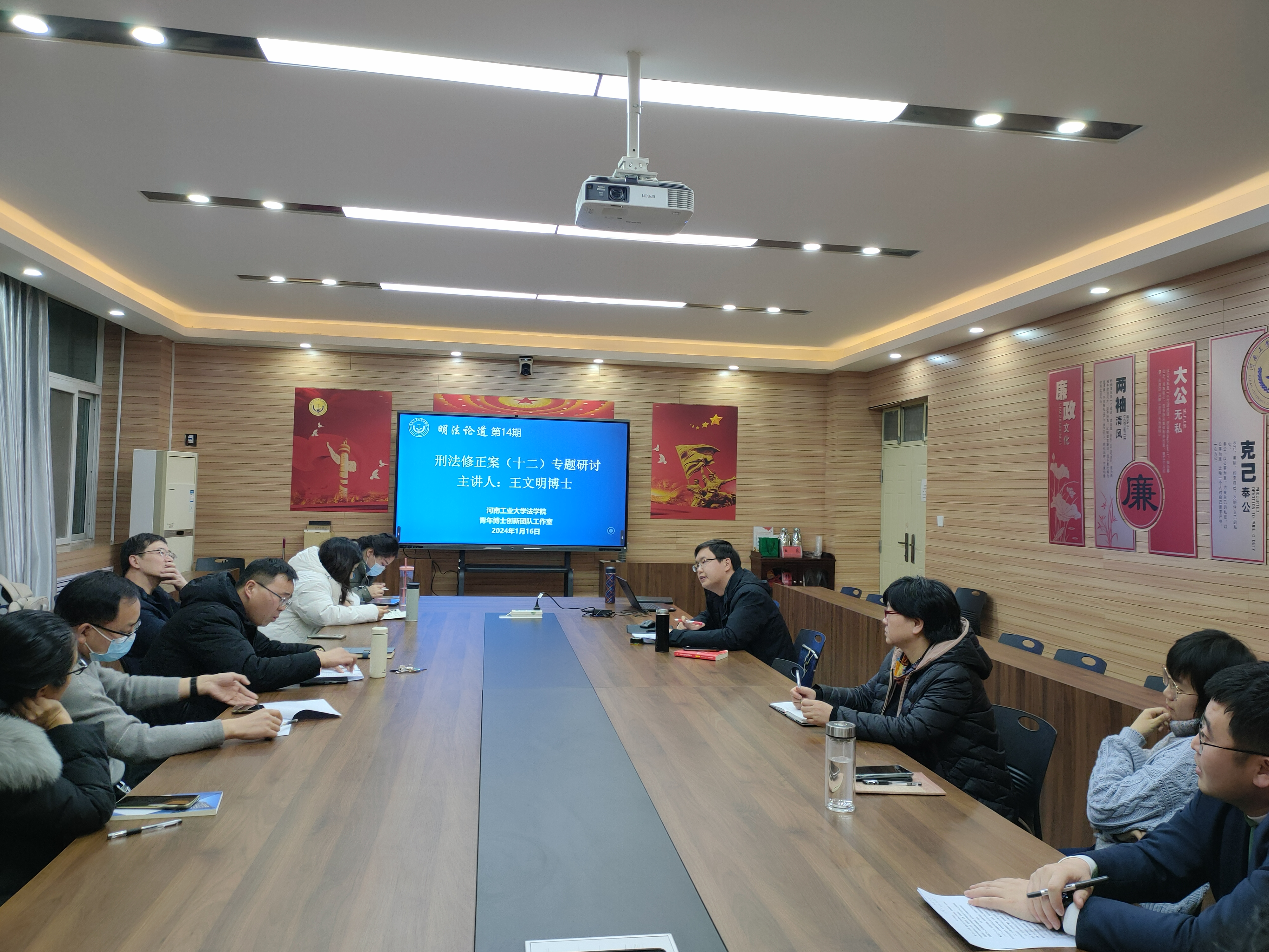 《刑法修正案(十二)》专题学习环节,王文明博士从《刑法修正案(十二)》的起草情况、立法背景、条文的主要内容、罪名的变化等方面展开了详细地讲解。与谈环节,各位老师对王文明的讲解表示认可,并结合自己的研究方向、对条文的理解就《刑法修正案(十二)》进行了评析。自由发言环节,大家畅所欲言,讨论十分热烈。