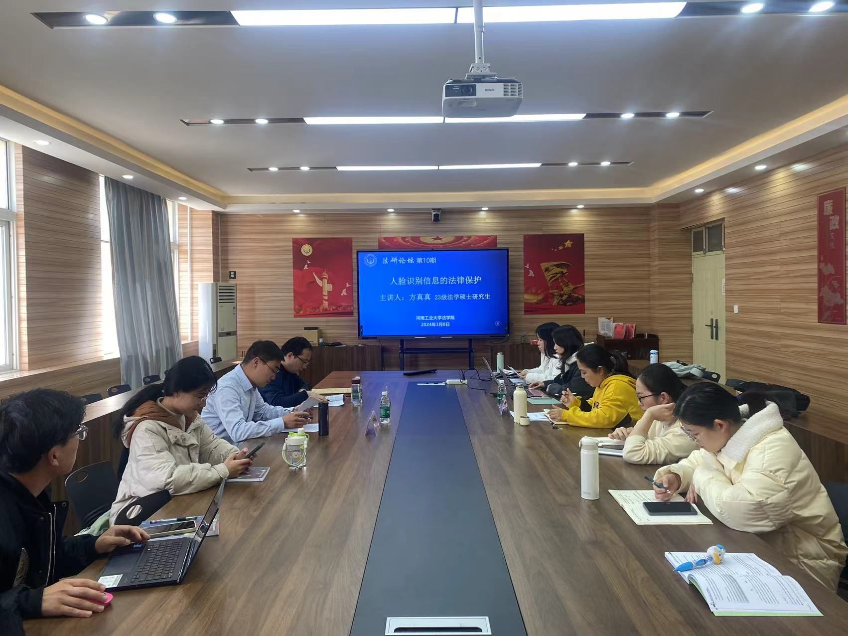 在3424会议室成功举办“法研论坛”第10期学术研讨会。本次会议邀请硕士生导师李耀跃副教授、陶泽飞博士担任评议人,硕士生导师张静副教授担任总结人。2023级法学硕士研究生方真真围绕“人脸识别信息的法律保护”作主题分享。2023级全体研究生、部分本科生参加会议。会议由2023级法学硕士研究生杨川主持。