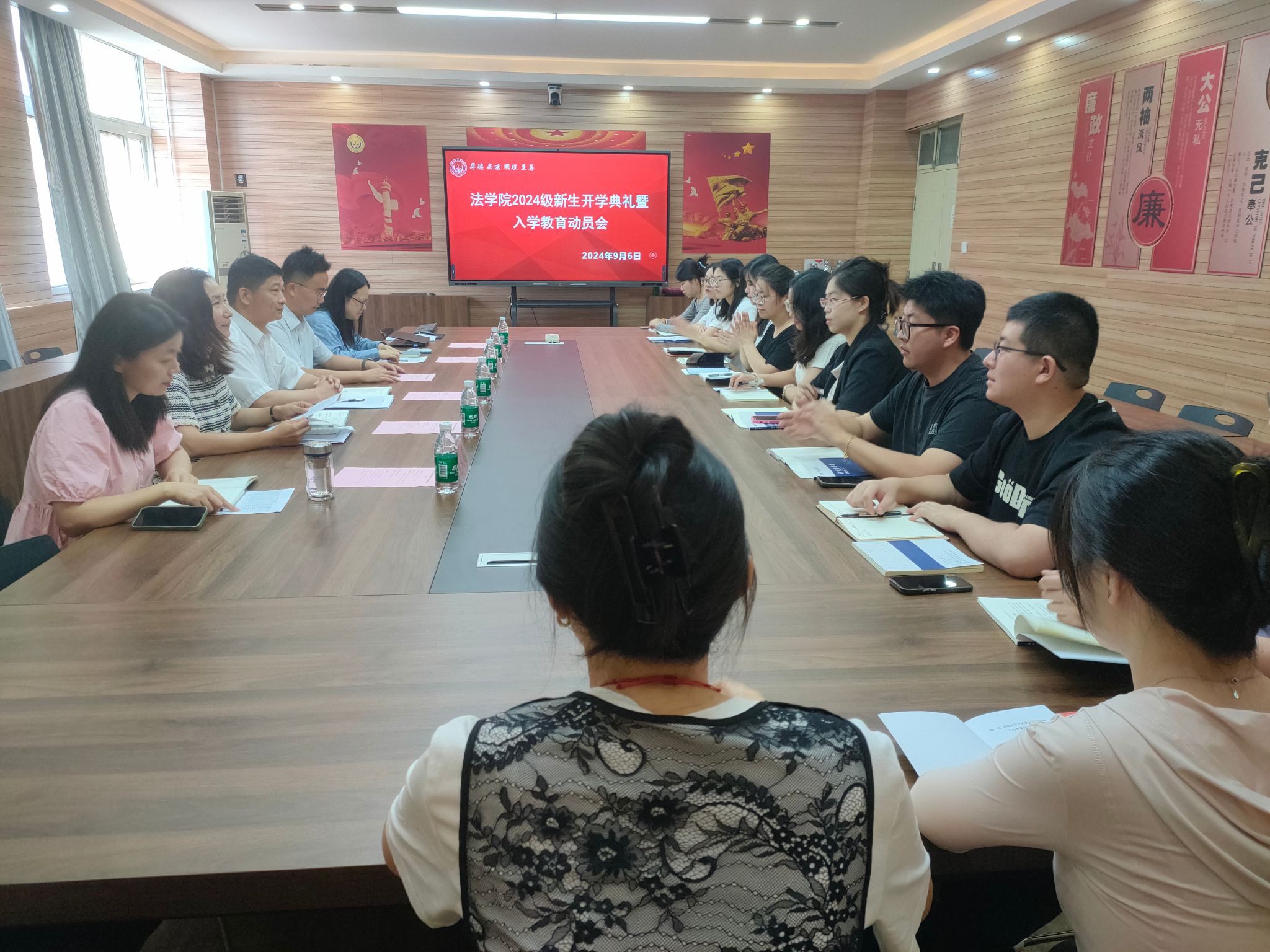 在3424会议室隆重举办了2024级研究生新生开学典礼暨入学教育动员会。学院党委书记许文、院长张道许、副书记张翠华、副院长南海燕、学工办主任庞文娟、研究生办公室主任苏冬冬及2024级全体研究生出席了典礼。典礼由张翠华主持。