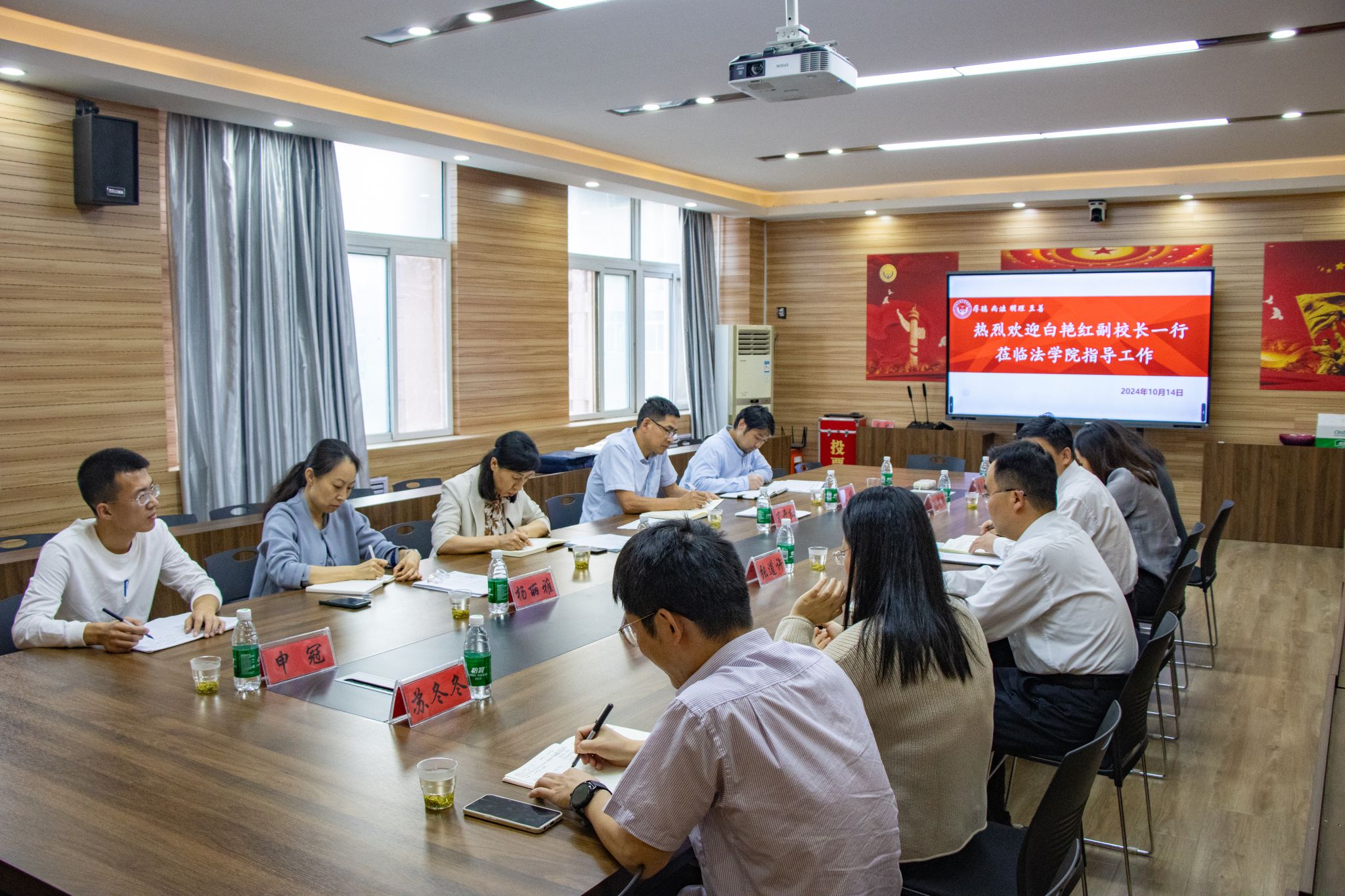 在学院班子陪同下,白艳红一行首先参观了学院办公区域“红色革命文化”、“优秀传统文化”、“社会主义先进文化”、“中国法律文化”、“西方法律文化”等文化建设板块。随后在3424会议室召开了工作调研座谈会。