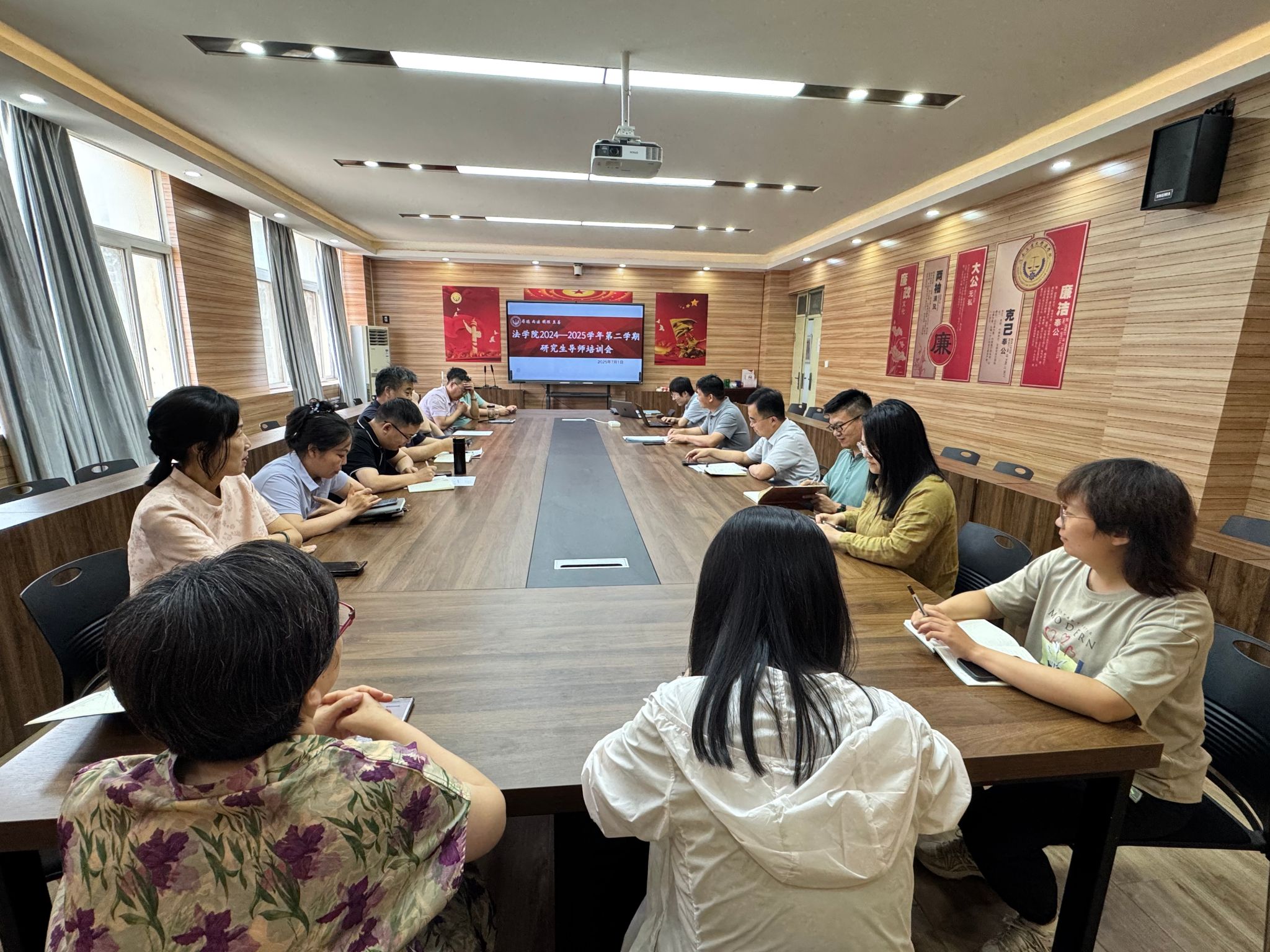 组织召开研究生导师业务培训会。学院党委书记许文、院长张道许、全体研究生导师参会,会议由副院长南海燕主持。