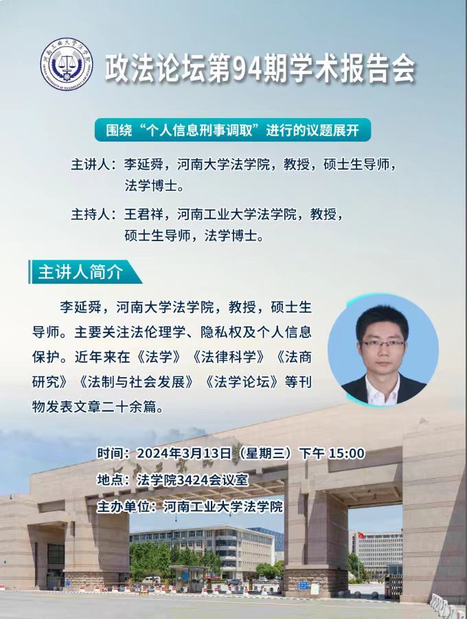 主讲人:李延舜,河南大学芭乐视频 教授,硕士生导师,法学博士。