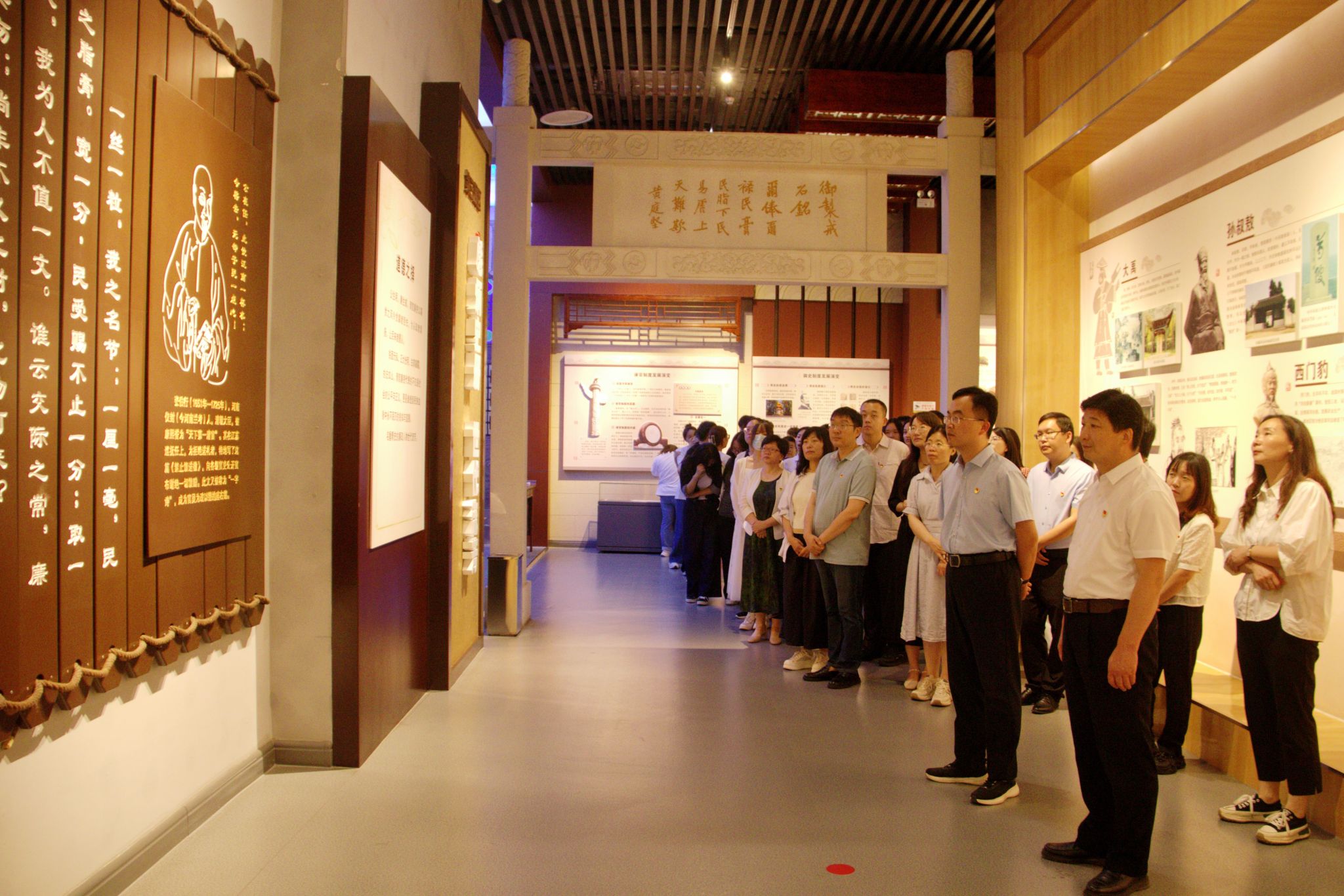 党委副书记张翠华的带领下,重温入党誓词。铿锵有力的誓言,既是对初心使命的庄严承诺,也是对持续奋斗的坚定信心。随后,在讲解员的带领下,党员们依次参观了“鉴史问廉--中国古代廉政文化展”、“警钟长鸣--中国共产党党风廉政建设展”、“光辉历程--新时代河南全面从严治党成果展”三个主题展厅,通过图文展示、影片演示、场景复刻、实物展览等方式,全方位、生动化、系统性了解中国古代廉政文化的历史脉络、中国共产党党风廉政建设的发展历程、新时代河南全面从严治党的成果展示。展厅内熠熠生辉的廉政故事和发人深省的贪腐案例形成鲜明对照,震撼人心,引发广大党员对加强党风廉政建设,永葆共产党政治本色的强烈共鸣,深化了恪守“学纪、知纪、明纪、守纪”的廉洁意识。