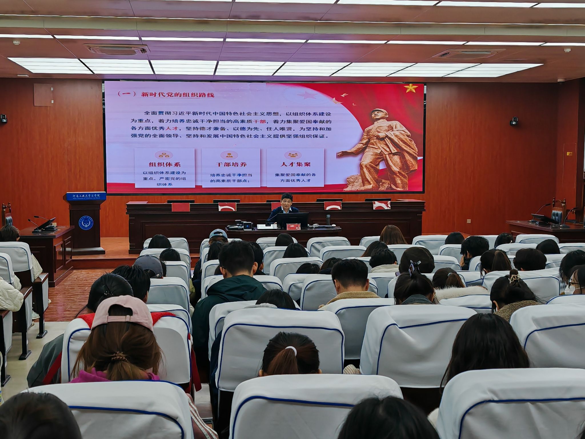 党委书记许文在3121模拟法庭,以《中国共产党的组织、纪律和作风》为题,为学院全体党员讲授专题党课。