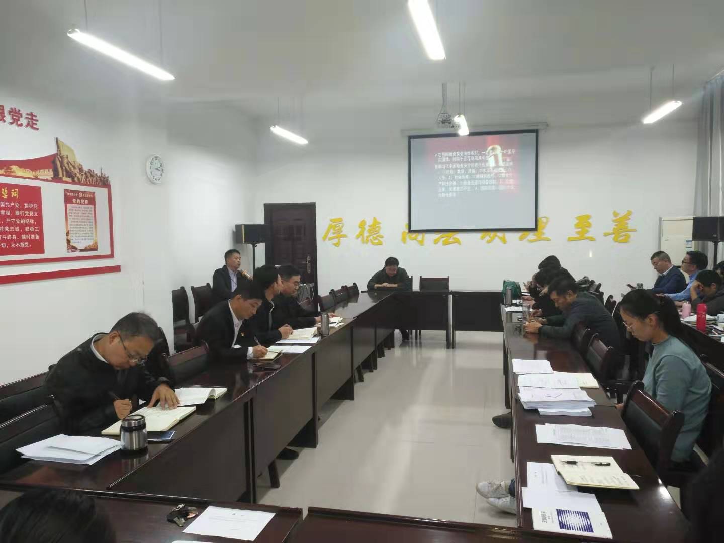 教工第二党支部书记穆中杰教授做了题为“科学把握粮食安全法的立法定位”的专题讲座,他从中国典籍中有关粮食安全的记载切入,分四个方面阐释了我国粮食安全法的立法定位:第一,既服务于经济基础,又服务于上层建筑;第二,既保障数量安全,又保障质量安全;第三,既保障中国粮食安全,又保障世界粮食安全;第四,既保障城镇粮食安全,又保障农村粮食安全。在讲座过程中,穆中杰旁征博引,对各种数据信手拈来,有理有据地阐明了他对于如何科学把握粮食安全法立法定位的独到见解。最后,他在引用了习总书记有关保障粮食安全的重要论述后,以一句“祝天下苍生永远衣食无忧”为讲座划上了句号。