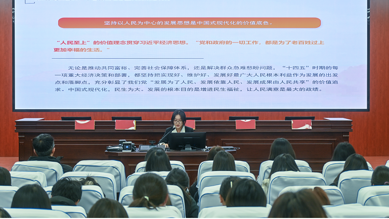 宣讲会上,周静以党的二十届四中全会的内涵、“十五五”规划编制的重大意义为切入点,鼓励同学们以敏锐的法律思维和坚定的法治信仰,在实现中国梦的征程中书写属于年轻人的壮丽篇章。包轩宁带领同学们回顾了“十四五”时期我国在各个领域取得的开创性进展、突破性变革和历史性成就,号召同学们不断提升自身专业本领,将个人理想融入国家发展大局,在全面建设社会主义现代化国家新征程中贡献青春力量。