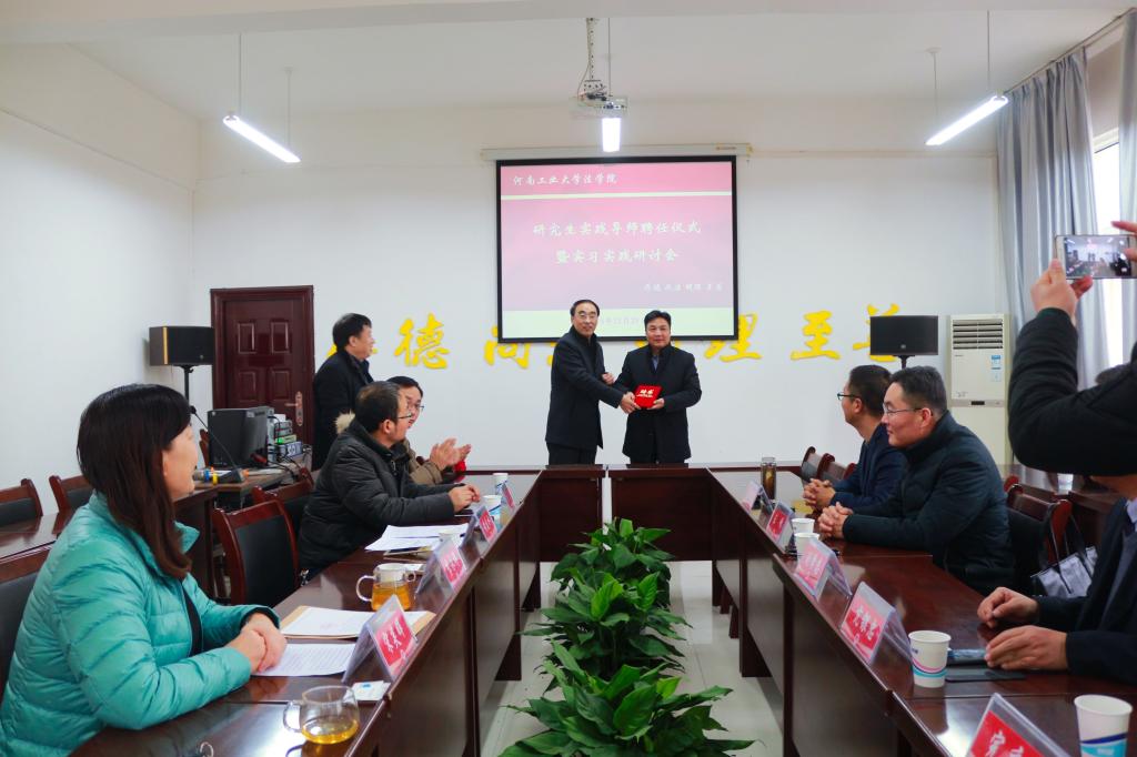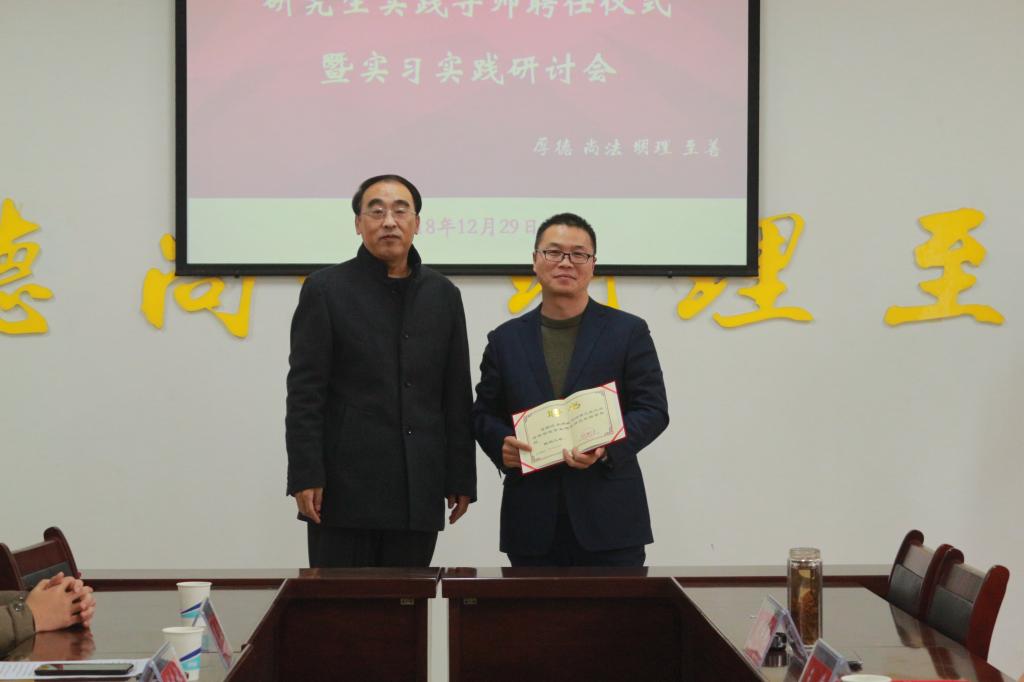 在2018年12月29号正式举行研究生实践导师聘任仪式暨实习实践研讨会,到会的领导和老师有校研究生处处长李永祥,聘任的实践导师为刘学志老师、王峰老师、亢银忠老师、完庆中老师、史焕乾老师。出席本次会议的还有芭乐视频