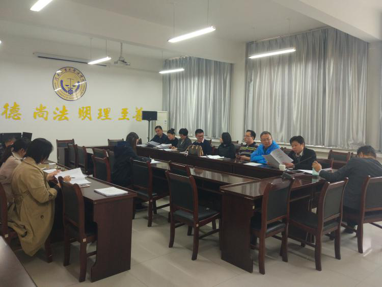 3424西会议室举行了2017级法律硕士研究生毕业论文查重版提交前的专家论证会。会议由副院长谭波教授主持,除研究生导师李文江副教授、蒋军洲副教授、张道许副教授出席外,陈政副教授、李耀跃副教授、南海燕副教授、黄延峰副教授担任评审,组成评审专家团,翟新老师负责记录,2017级五名硕士研究生均到场参加该次论文查重版提交前的专家论证会。