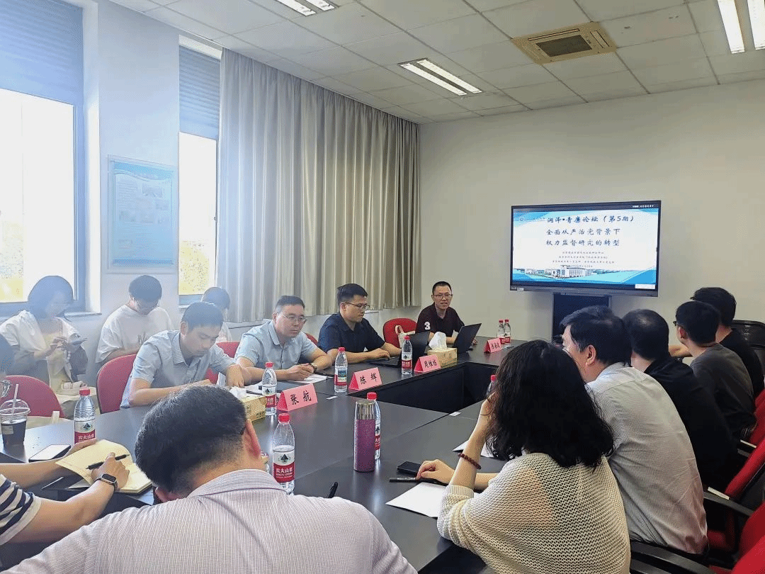 基础法教研室主任陈辉副教授应邀参加南京审计大学纪检监察学院主办的润泽·青廉论坛(第5期),本次会议的主题为“全面从严治党背景下权力监督研究的转型”。陈辉在研讨会上作了主旨发言,他梳理了《监察法实施条例》的修改亮点和进一步优化空间,并针对监察法学研究提出了具体的方法指引,其中所提观点得到与会专家学者的广泛认同。