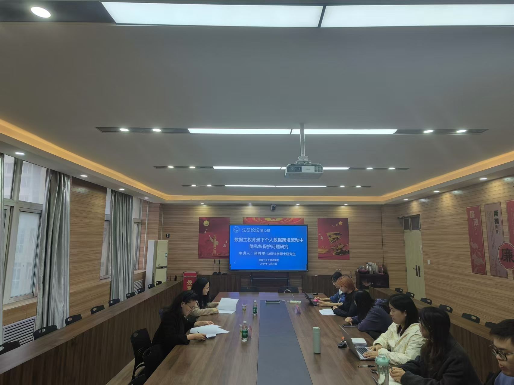 在3424会议室成功举办“法研论坛”第12期学术研讨会。2023级法学硕士研究生蒋胜美围绕“数据主权背景下个人数据跨境流动的隐私保护”作主题汇报。本次会议邀请芭乐视频