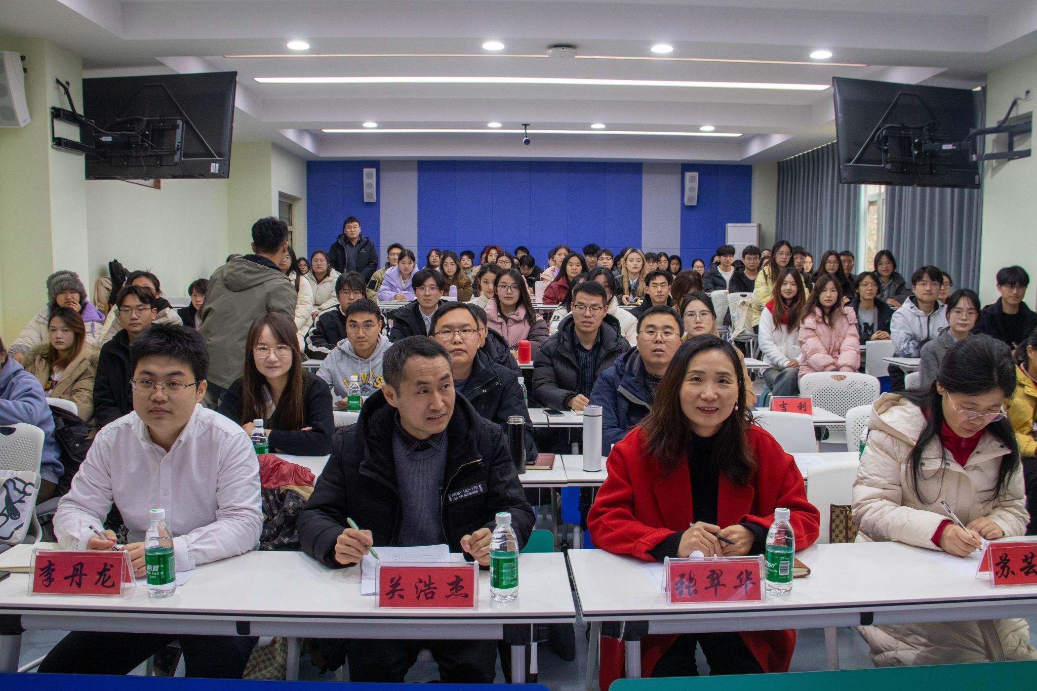 在智慧教室3229举行“挑战杯”大学生课外学术科技作品竞赛院级初赛,学院特邀经济贸易学院关浩杰老师担任评委并进行现场指导。院党委副书记张翠华、各团队指导老师、全体辅导员参加评审。