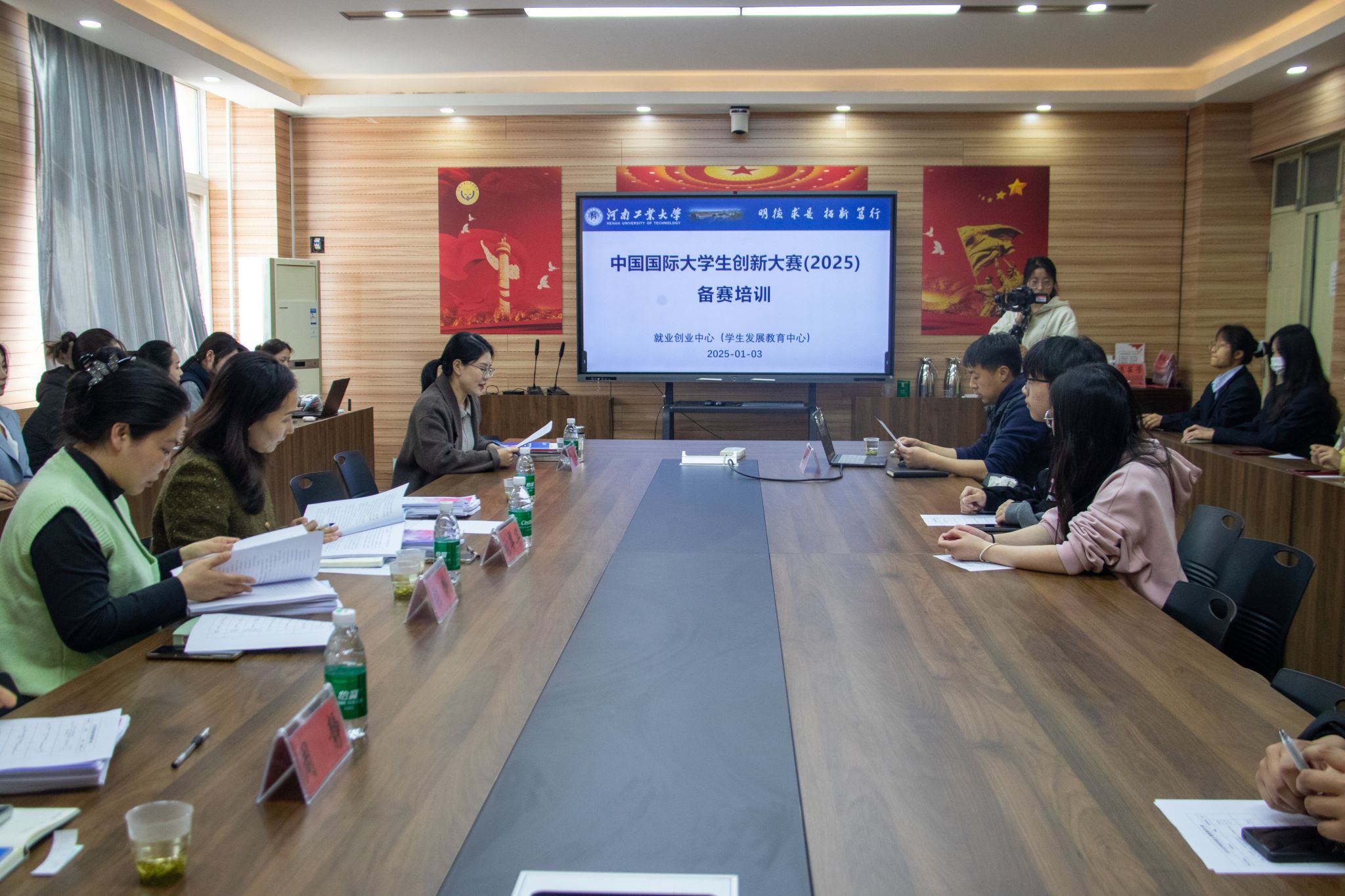 在3424会议室举办2025年中国国际大学生创新大赛院赛复赛。学院特邀校就业创业中心创业指导科科长徐鹏飞莅临指导,学院党委副书记张翠华、各团队指导老师、全体辅导员以及各参赛团队成员参加本次比赛。