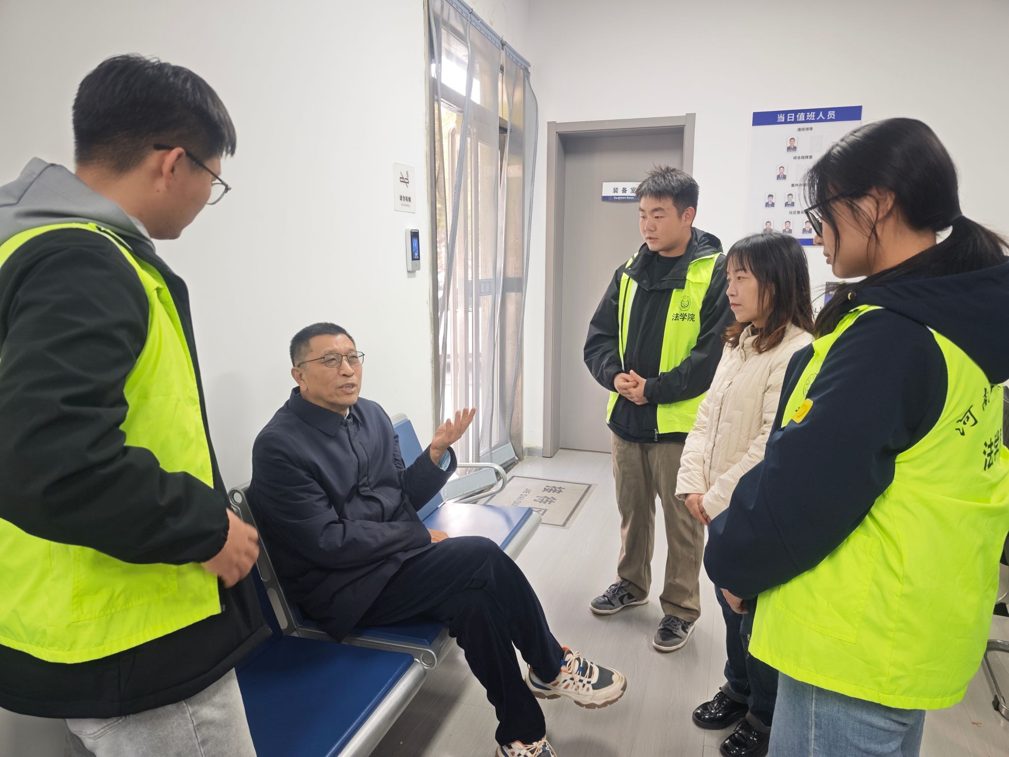 李文江围绕法律文书的规范撰写、基层执法辅助的具体流程以及矛盾纠纷调解的实用技巧等方面展开详细指导。他强调,校外实践基地是法学专业学生锤炼本领的“练兵场”,更是践行法治精神的“第一线”,学生在服务群众中实现自我成长,正是应用型法律人才培养的核心目标。他叮嘱学生要时刻牢记院训,深刻认识“依法实践、审慎履职”的重要意义,珍惜实践机会,将专业知识运用到服务群众的实际行动中。学生纷纷表示,关工委的指导不仅为他们解答了实践过程中遇到的困惑,还让他们清晰地把握了理论与实务的衔接要点,进一步增强了自身的安全防范意识和责任担当,在实践中感悟法治温度。