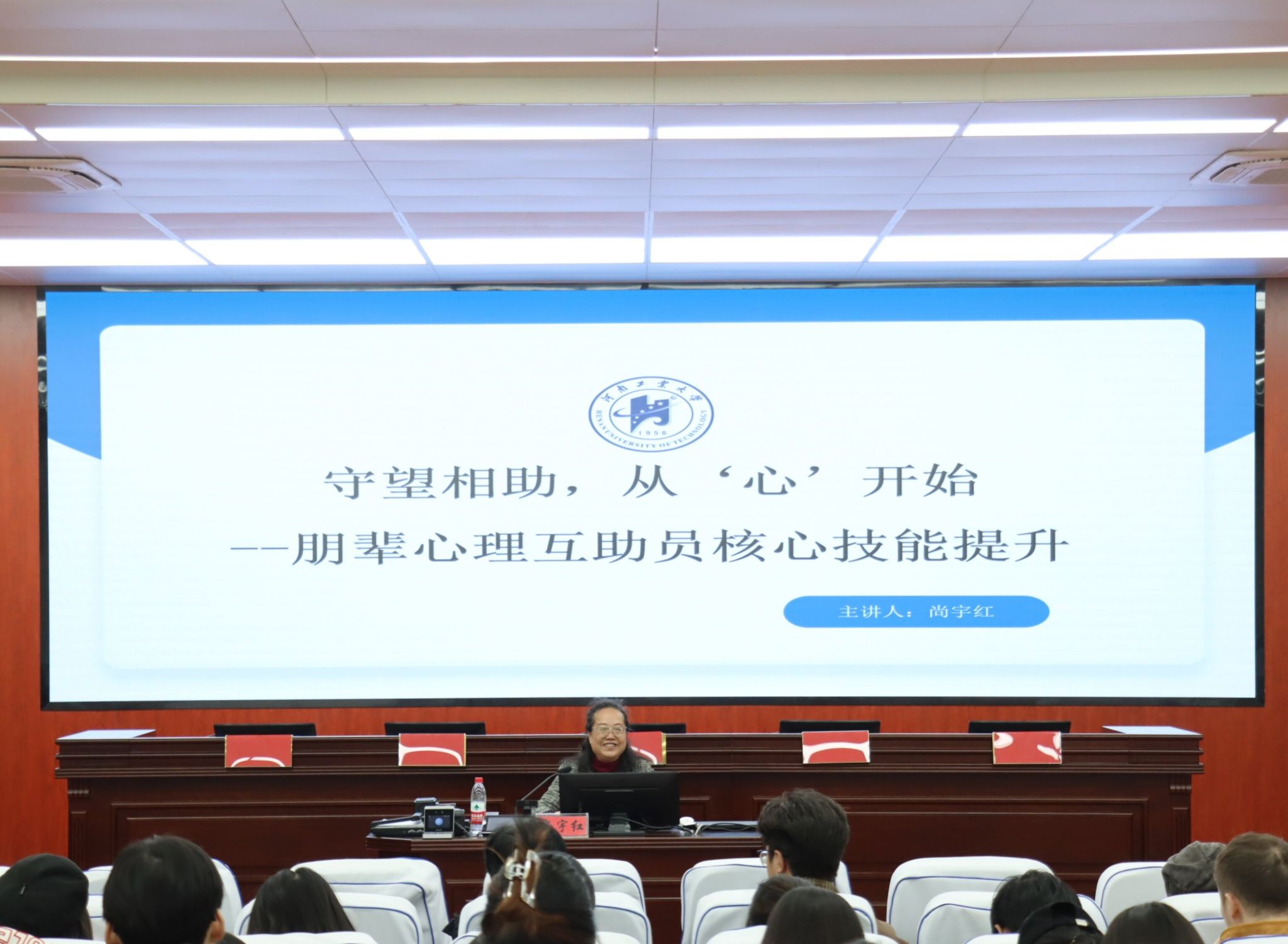 特邀学校心理健康教育中心办公室主任尚宇红老师开展专题培训。培训由辅导员吉利主持,学院党委副书记张翠华和全体心理委员、各班级心理联络员160余人共同聆听了讲座。