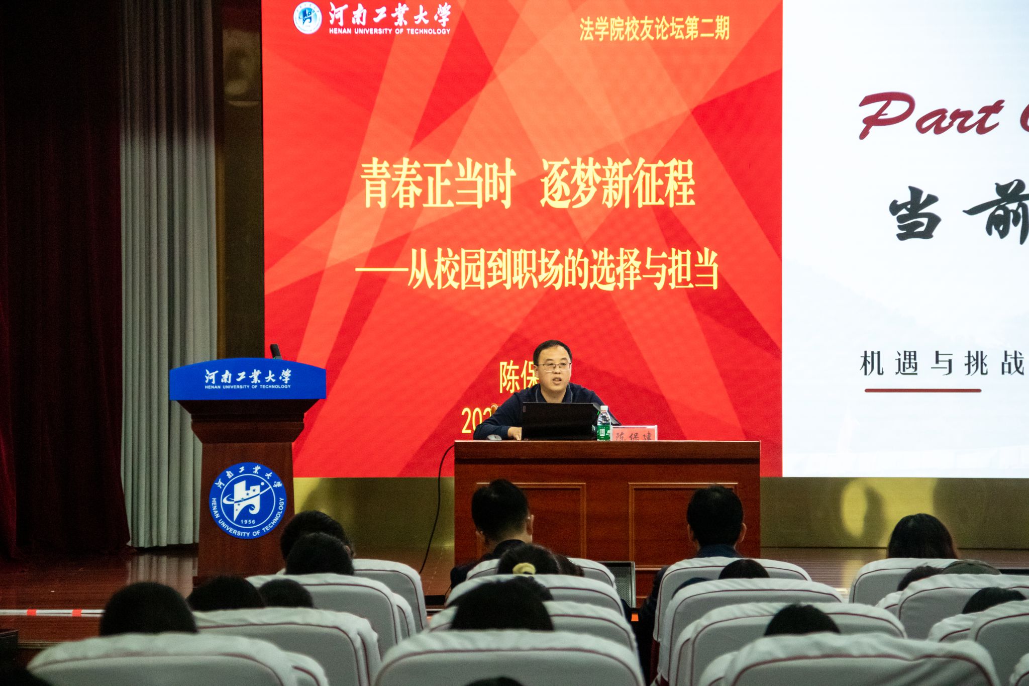 2009届优秀校友,拉萨市行政审批和便民服务局的陈保建作报告,报告题目为“青春正当时,逐梦新征程——从校园到职场的选择与担当”。学院党委书记许文、院长张道许及学生参加论坛。论坛由张道许主持。