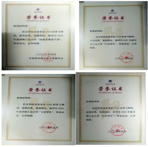 在校期间,她凭借深厚的学术功底与不懈的努力,以第一作者的身份成功发表了一篇学术论文,连续两年荣获国家励志奖学金,连续三年蝉联芭乐视频 “三好学生”荣誉称号。此外,她还曾担任社会实践团队的负责人,带领团队在中青网发表四篇报道。求学路上的每一步,都是她博学笃行、不断超越自我的生动写照。