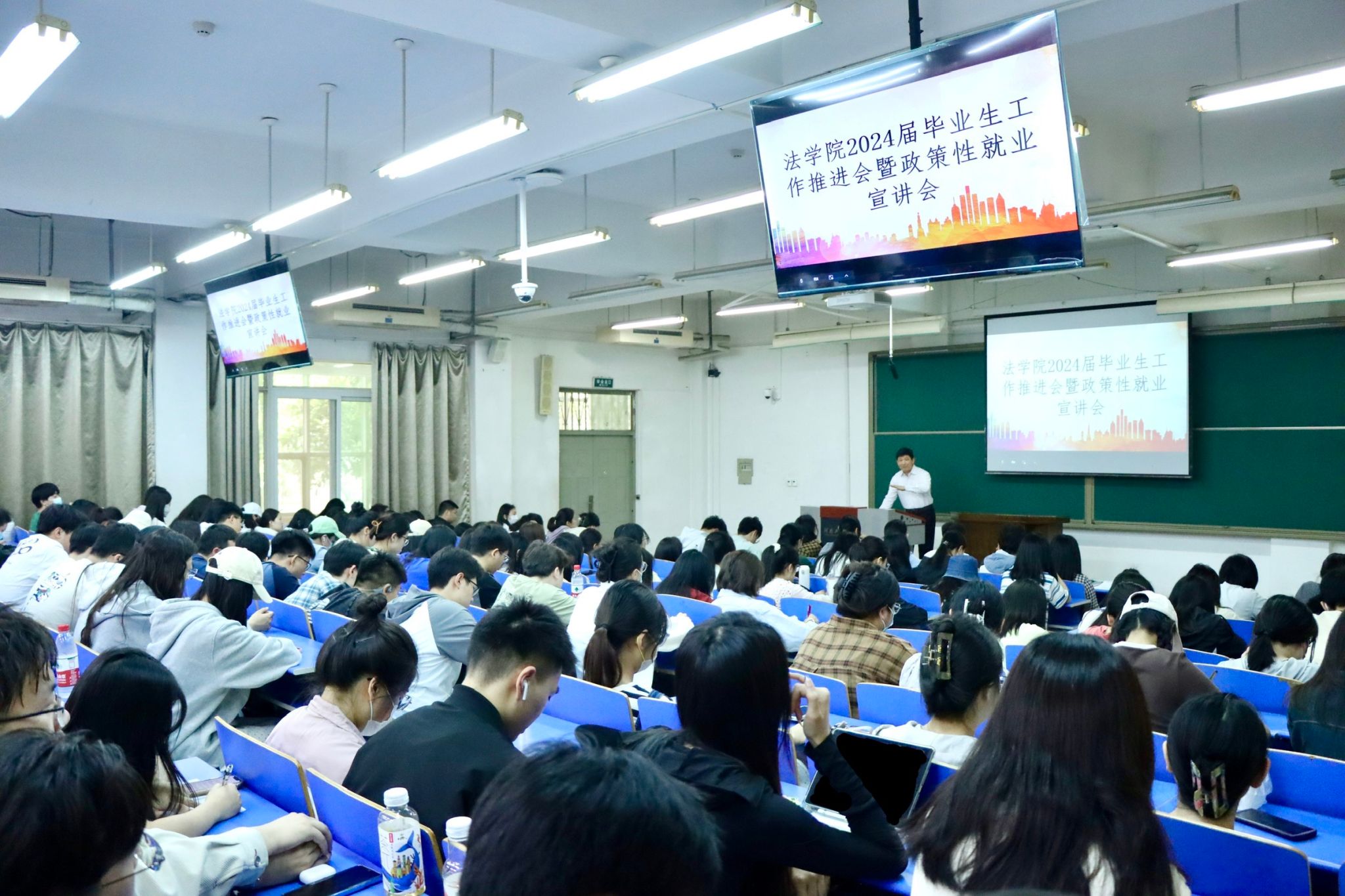 在4120教室召开了2024年毕业生工作推进暨政策性就业宣讲会,部署毕业论文相关工作,并号召毕业生“到西部去,到基层去,到祖国最需要的地方去”。学院党委副书记许文,副院长南海燕,学工办、教学办的老师及全体毕业生参加会议。会议由教学办副主任孙艳华主持。