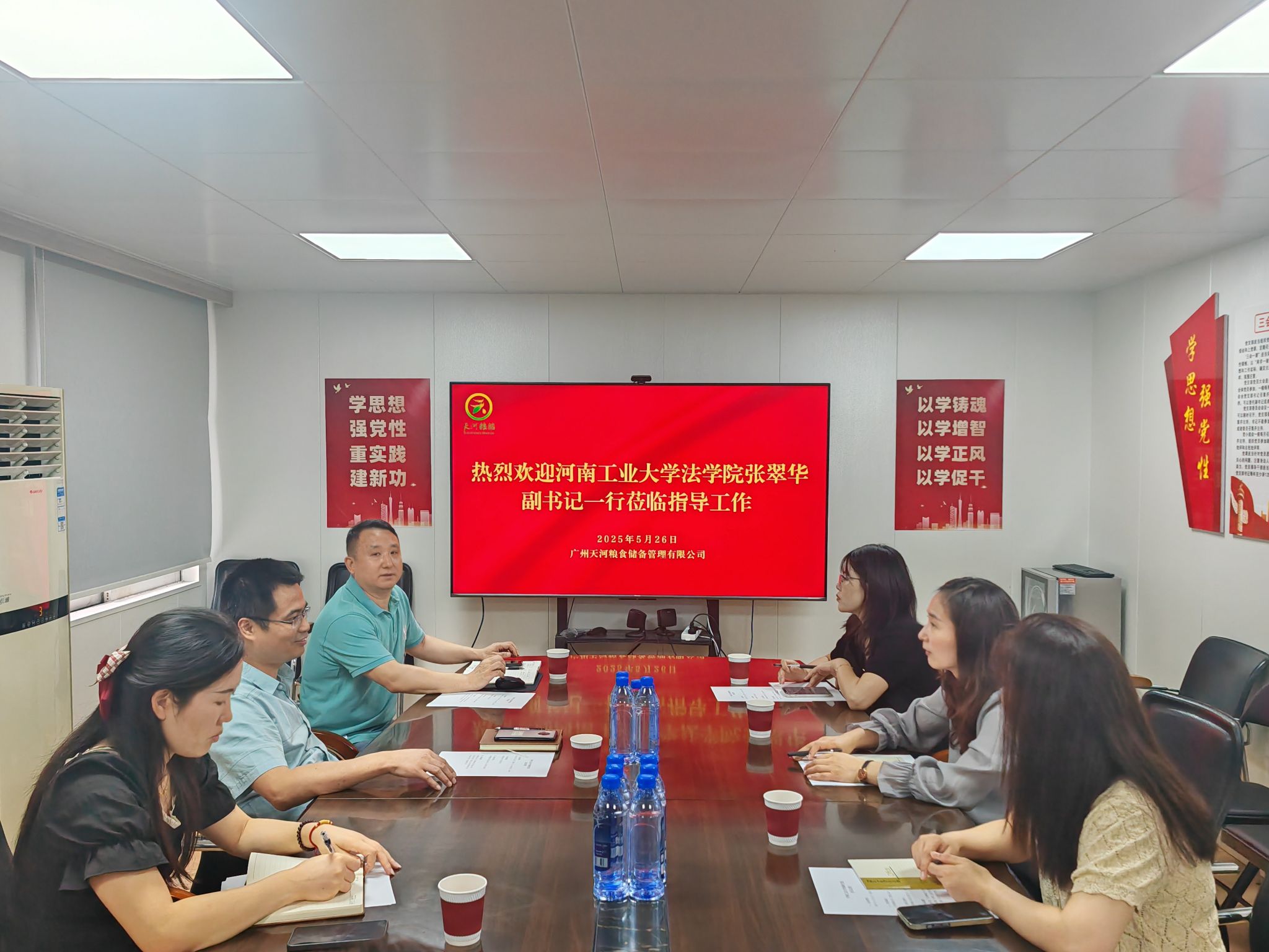 在广州天河粮食储备管理有限公司,张翠华一行首先参观了公司旗下的平价粮油商店,了解公司的业务范畴和发展方向。随后,双方进行了座谈交流,企业负责人张初阳介绍了公司的历史沿革、内部架构、发展概况、未来规划等情况,双方就法务岗位的用人需求进行了详细交流。